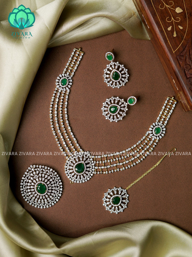 Green Grand bridal with detachable pendant -Traditional south indian premium neckwear with earringsand tikka - Zivara Fashion- latest jewellery design.