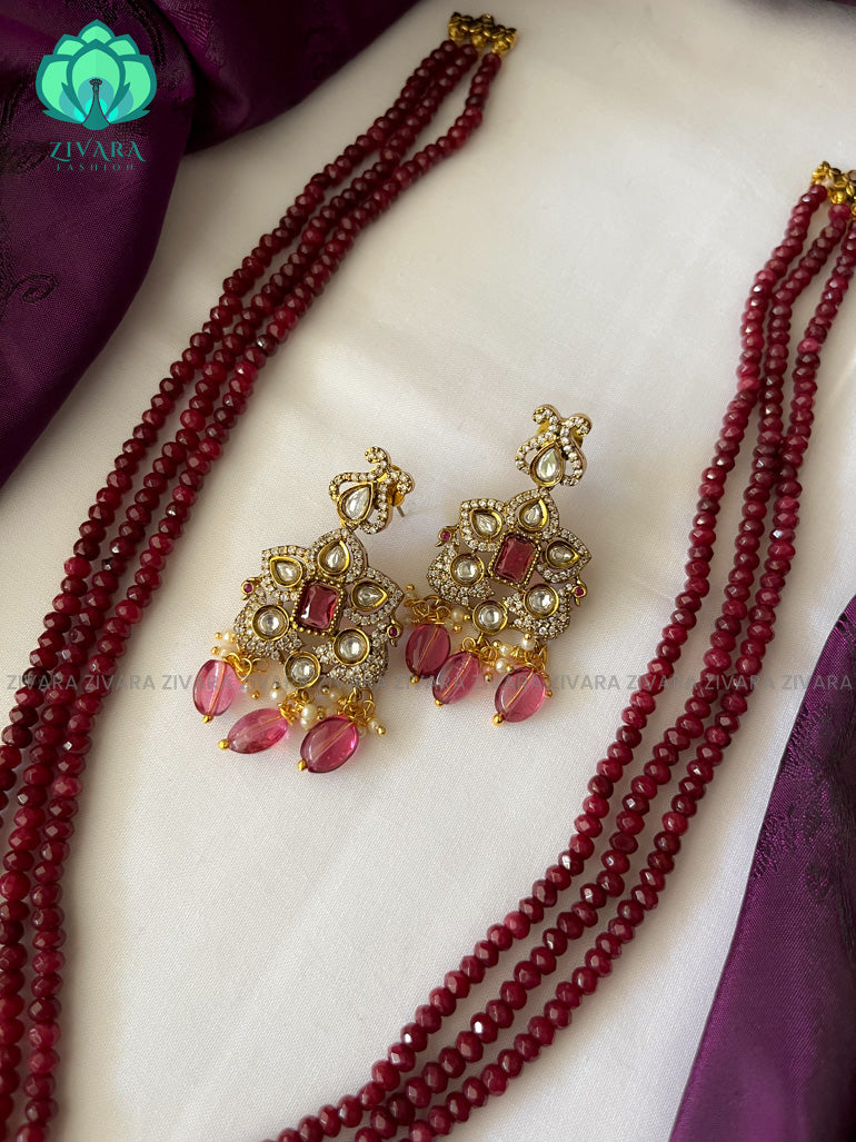 Victorian finish RUBY beads long haaram with stones- Premium quality CZ Matte collection
