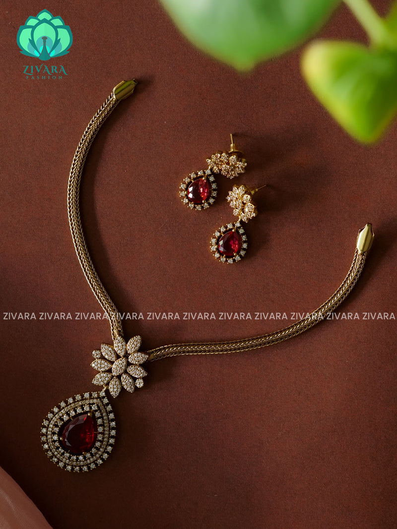 RUBY- BIG SIZE TEAR PENDANT- Traditional south indian NORMAL MATTE neckwear with earrings - Zivara Fashion