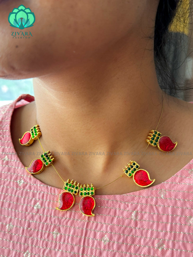Red and Green- INIYA - Simple kemp attigai neckwear - latest kemp dance jewellery collection