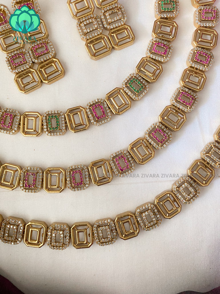 Gold like box elegant necklace with earrings CZ matte Finish- Zivara Fashion