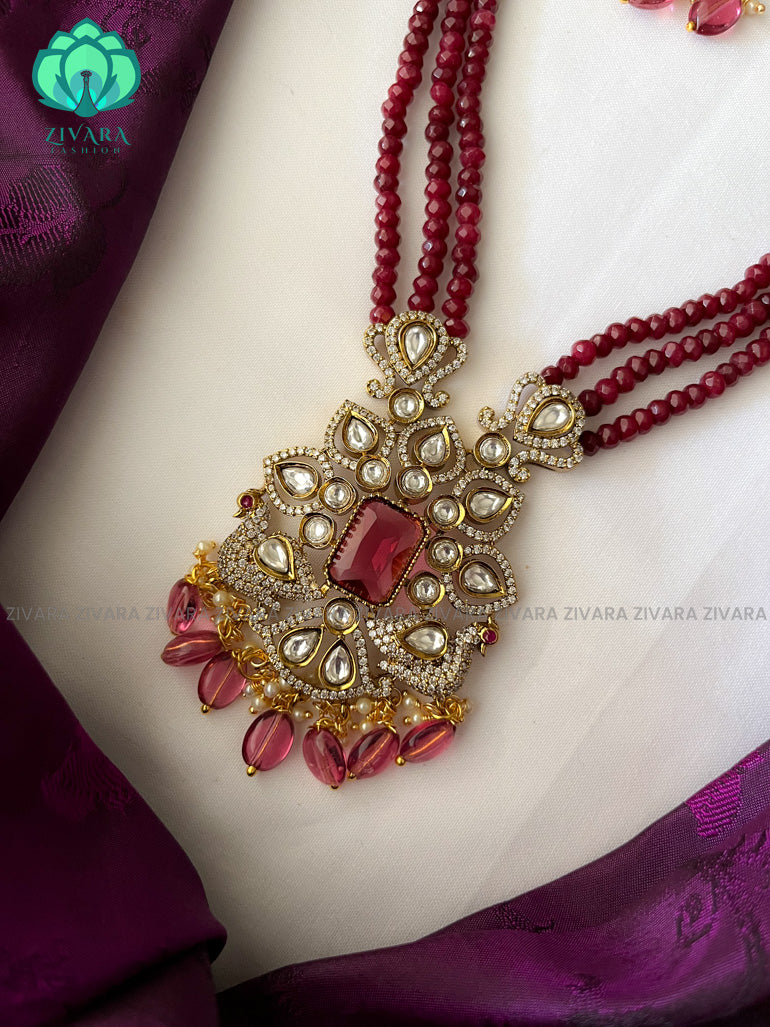 Victorian finish RUBY beads long haaram with stones- Premium quality CZ Matte collection