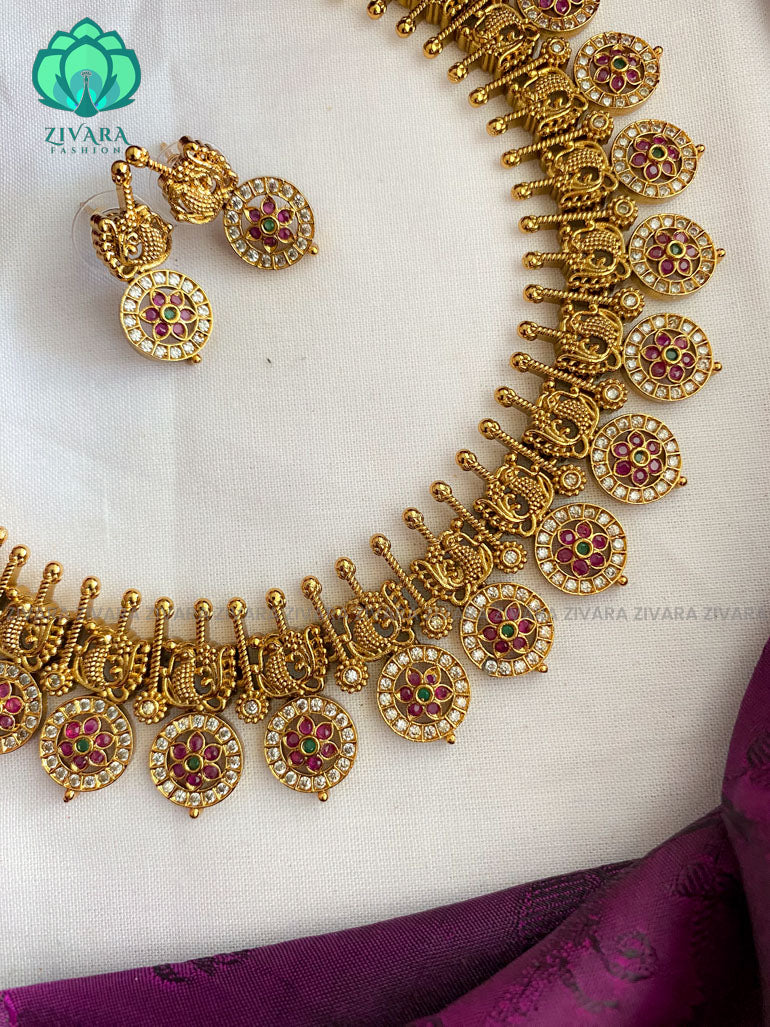 Annapakshi coin - Traditional south indian premium neckwear with earrings- Zivara Fashion- latest jewellery design