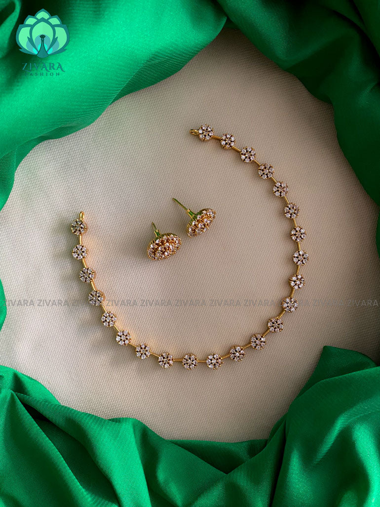 Kids friendly Simple floral white stone neckwear with earrings- Zivara Fashion