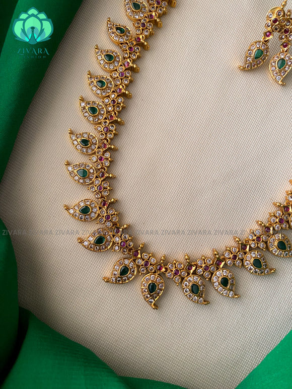 Beautiful annapakshi long Neckwear with earrings- CZ Matte Finish- Zivara Fashion