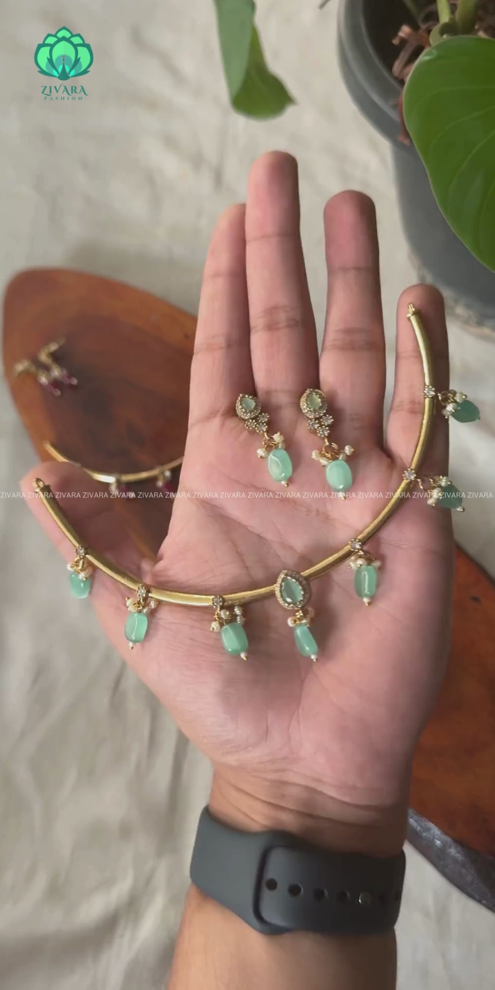 PASTEL GREEN - Simple beads hanging Traditional south indian premium neckwear with earrings- Zivara Fashion- latest jewellery design