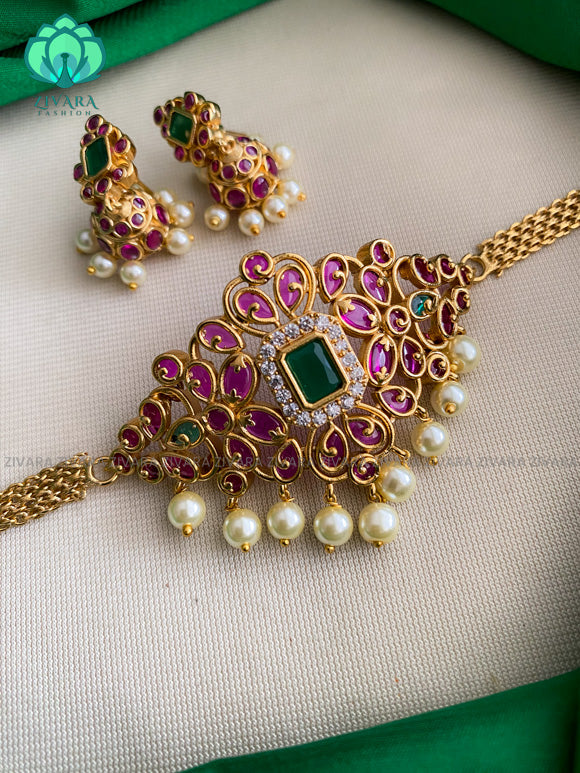 Real kemp bridal guttapusalu choker- CZ matte finish- Zivara Fashion