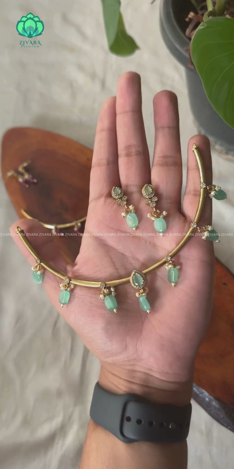 GREEN - Simple beads hanging Traditional south indian premium neckwear with earrings- Zivara Fashion- latest jewellery design