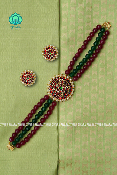 Vhaijaiyanthi- kemp choker with earrings -south indian kemp neckwear for women