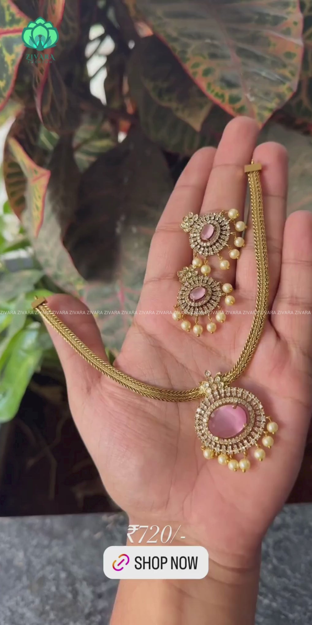 PASTEL PINK - FLEXIBLE CHAIN AND OVAL PENDANT -Traditional south indian premium neckwear with earrings- Zivara Fashion- latest jewellery design