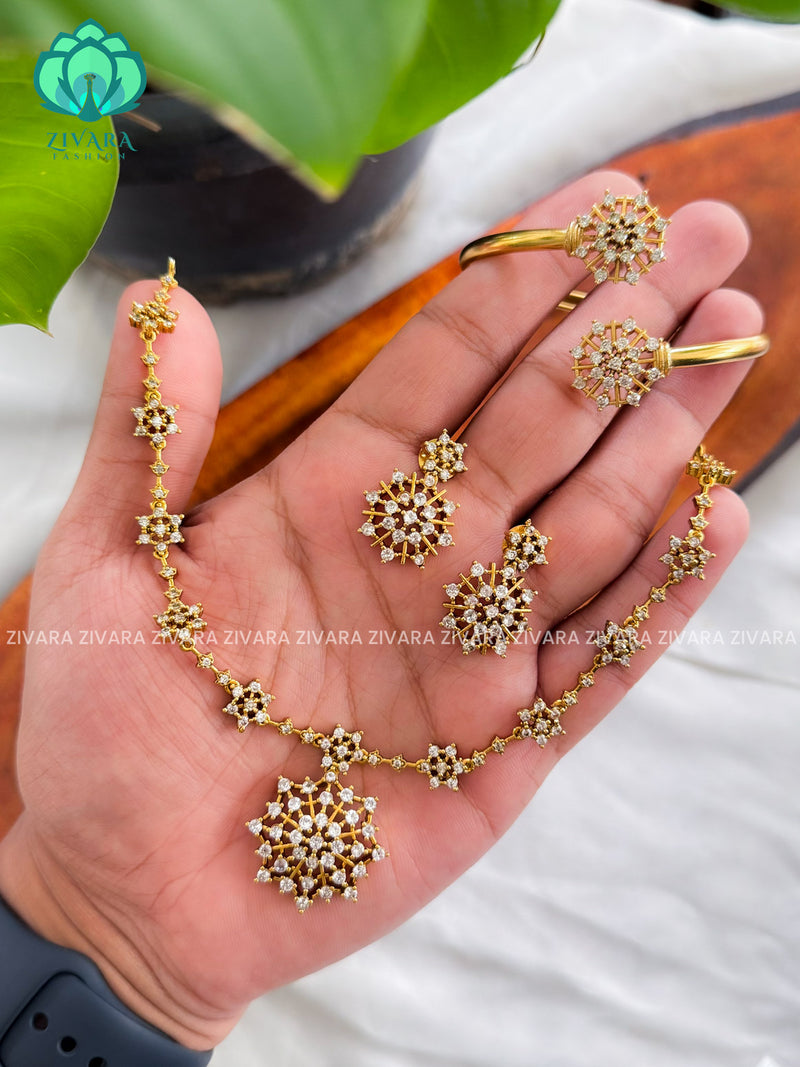 EXCITING COMBO OF STAR WHITE STONE NECKLACE EARRINGS AND KADAS- TRENDING RETURN GIFT OPTIONS - Zivara Fashion