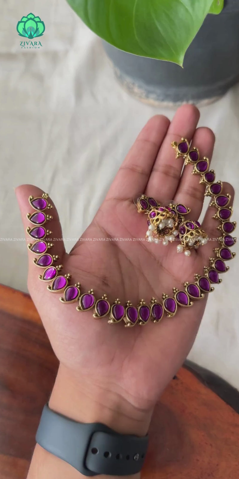 PURPLE / VIOLET MANGO neckset -Traditional south indian NORMAL MATTE neckwear with earrings- Zivara Fashion- latest jewellery design.