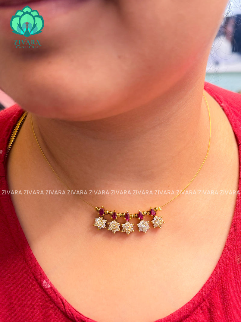 RUBY STONE - STAR TAMARA INVISIBLE MINIMAL ELEGANT HANDMADE NECKLACE WITH BRILLIANT FINISH MOTIFS- ZIVARA FASHION
