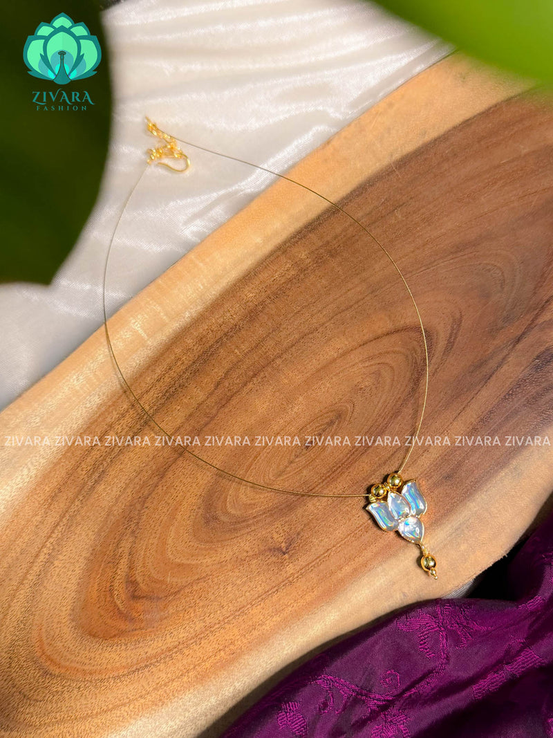 WHITE - TAMARA- SINGLE LOTUS INVISIBLE MINIMAL ELEGANT HANDMADE NECKLACE WITH BRILLIANT FINISH MOTIFS- ZIVARA FASHION