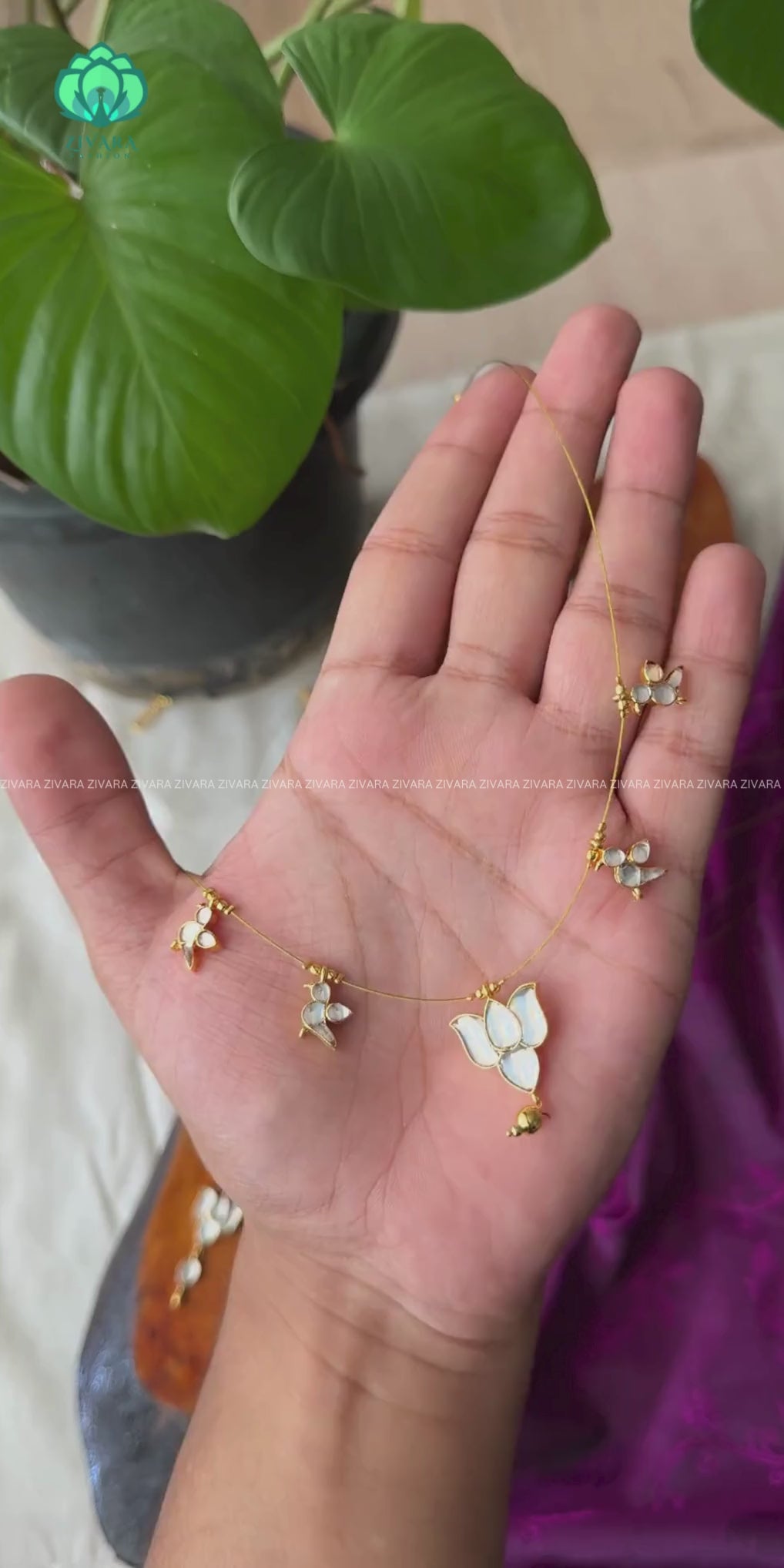 WHITE - TAMARA- LOTUS AND PARROT INVISIBLE MINIMAL ELEGANT HANDMADE NECKLACE WITH BRILLIANT FINISH MOTIFS- ZIVARA FASHION